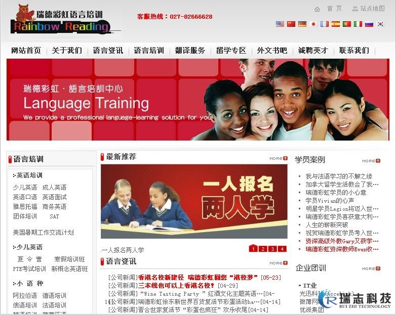 瑞德培训是一家全方位语言培训机构。培训广泛涵盖:英语、法语、德语、日语、韩语、俄语、西班牙语、葡萄牙语等8个语种,设有:少儿英语、成人英语、商务英语、行业英语、雅思、托福、SAT、高校面试、出国面签、对外汉语、小语种考级培训等25类课程。